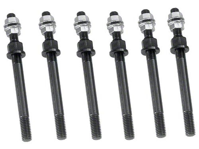 Windage trays bolt on to your motor inside of the oil pan, and provide a barrier between your spinning crankshaft and oil. One of these stud kits is required to mount a windage tray assembly correctly. The adjustable mounting-position feature allows you to position the tray as closely as possible to the rotating assembly (minimum 1/10 in.), so the tray can work at its maximum potential. You can also adjust your tray to avoid interference with the oil pan (special torquing requirements apply, and the tray must lie naturally flat after positioning nuts are torqued).