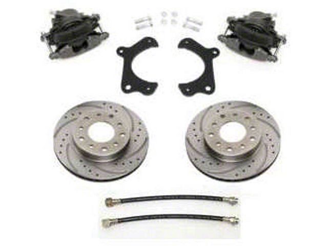 Until now, converting to disc brakes required buying new spindles. With Rick's kit, you can use your stock drum brake spindle and save the expense of buying new spindles. In addition using the drum brake spindles, pull the wheel center location in 1/2" (from where a stock disc brake car wheel would sit) which allow you to run wider tires. Unlike other kits, Rick's kit gives you a one-piece disc brake bracket, large 11" GM rotors and large GM F body loaded calipers. You can also use stock the stock drum brake hub bearing and seals. The Rick's kit includes all the necessary mounting hardware and you can use any 15" disc brake wheel.
