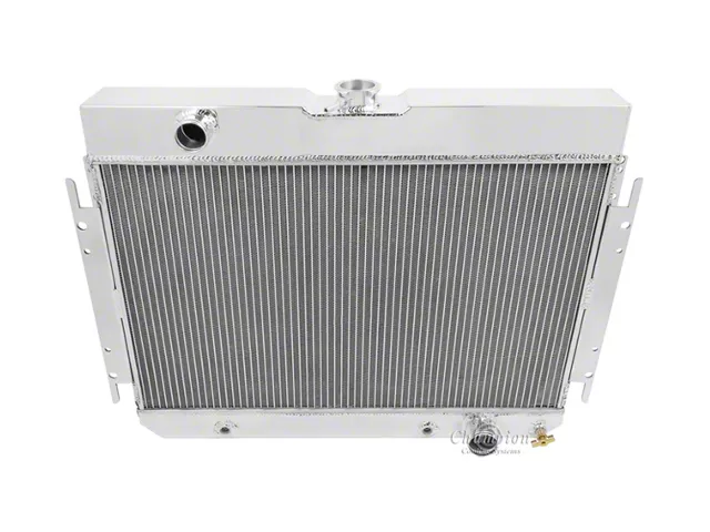Your 1964-1967 Chevelle and Malibu can get hot...really hot. Bumper to bumper traffic, blistering summer days, and daily driving can add up. The factory copper and brass radiators were barely satisfactory at transferring heat which is why Chevy engine will overheat. Why take chances with your valuable Chevy engine? Champion Aluminum Radiators from Ecklers Chevelle provide outstanding performance at an exceptional value. Aluminum is a far superior to the original copper and brass because it dissipates heat and cools down much more quickly. That means better protection for your investment. Champion's aluminum radiator is 50-75% lighter than your factory copper and brass radiator unit and cools up to 40% better. Plus, the incredible price makes this Champion radiator an exceptional value.