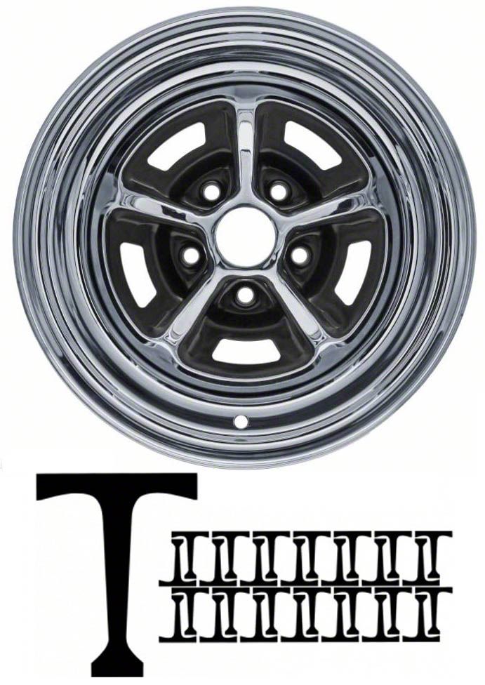 This 14" & 15" Magnum 500 wheel paint stencil kit includes 30 paint masks. This amount allows you to mask 5 wheels, plus have extra pieces. If you have the all painted Magnum 500s it's best to sandblast them, then paint the whole wheel silver (or a custom color of your choosing). You then apply the stencil pieces and paint the black areas. If you have the chrome Magnum 500s just scuff down the existing paint, smooth out any chips or edges, apply the masks, then repaint the black areas. You will be rewarded with clean, precise edges in a fraction of the time it would take to mask them by hand.