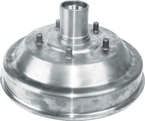 With new wheel studs, turned to true after the hub is installed. This is a new assembly with the hub swedged and the drum turned to fit the arc of the shoes.