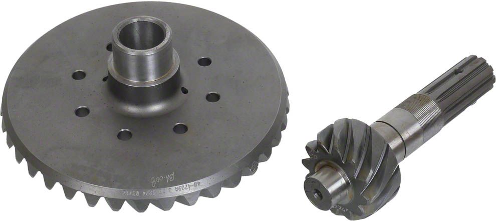 This ring and pinion set will allow you to drive at highway speeds much more comfortably and without stressing out your engine. Prior to ordering please check how many splines your original pinion gear has. This set has 10 splines like most original cars. We also offer bearings, washers, nuts, and other differential-related hardware.