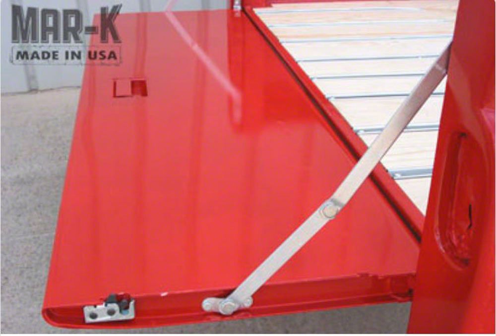 This tailgate is a complete kit that includes the two latches installed on the tailgate with internal handle mechanism, and the link assembly to hold the tailgate level when opened. These links fold up and are hidden inside the tailgate ends when the tailgate is closed. Handle is inside the bed so the outside has a smooth look. A customizing kit is also included to convert original bed sides to work with the handle and latching mechanism. Installation of this tailgate requires modification to bed sides. Made of 16 gage electro galvanized steel. Ready to primer and paint. Tailgate trunnions sold separately.