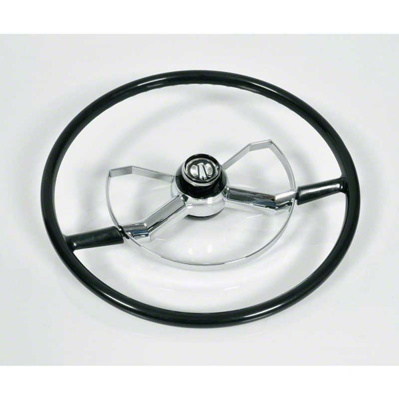 Replacing your cracked original steering wheel gives your truck a showroom new look. Eckler's Trucks offers a great reproduction butterfly steering wheel kit for your classic. The black wheel kit comes complete with horn ring and center cap. The 17 1/2" diameter mimics the original and will give your interior a fresh new look. Trust Eckler's Trucks for all your 1939, 1940, 1941, 1942, 1943, 1944, 1945, 1946, 1947, 1948, 1949, 1950, 1951, 1952, 1953, 1954 Chevy and GMC restoration parts needs.