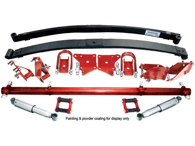 TCI's American made Parabolic leaf springs are a modern implementation of traditional parabolic leaf springs. This design is characterized by fewer leafs whose thickness varies from center to ends following a parabolic curve. In this design, inter-leaf friction is unwanted, and therefore there is only contact between the springs at the ends and at the center where the axle is connected. The primary benefit of parabolic springs is better ride quality and not being as stiff as conventional multi-leaf springs. As an added bonus there are less springs which offers 28% weight savings over the 5 leaf kit previously offered.This kit includes everything you’ll need to install a brand new suspension into the rear of your vehicle. Everything that attaches to the chassis bolts into place. There is
