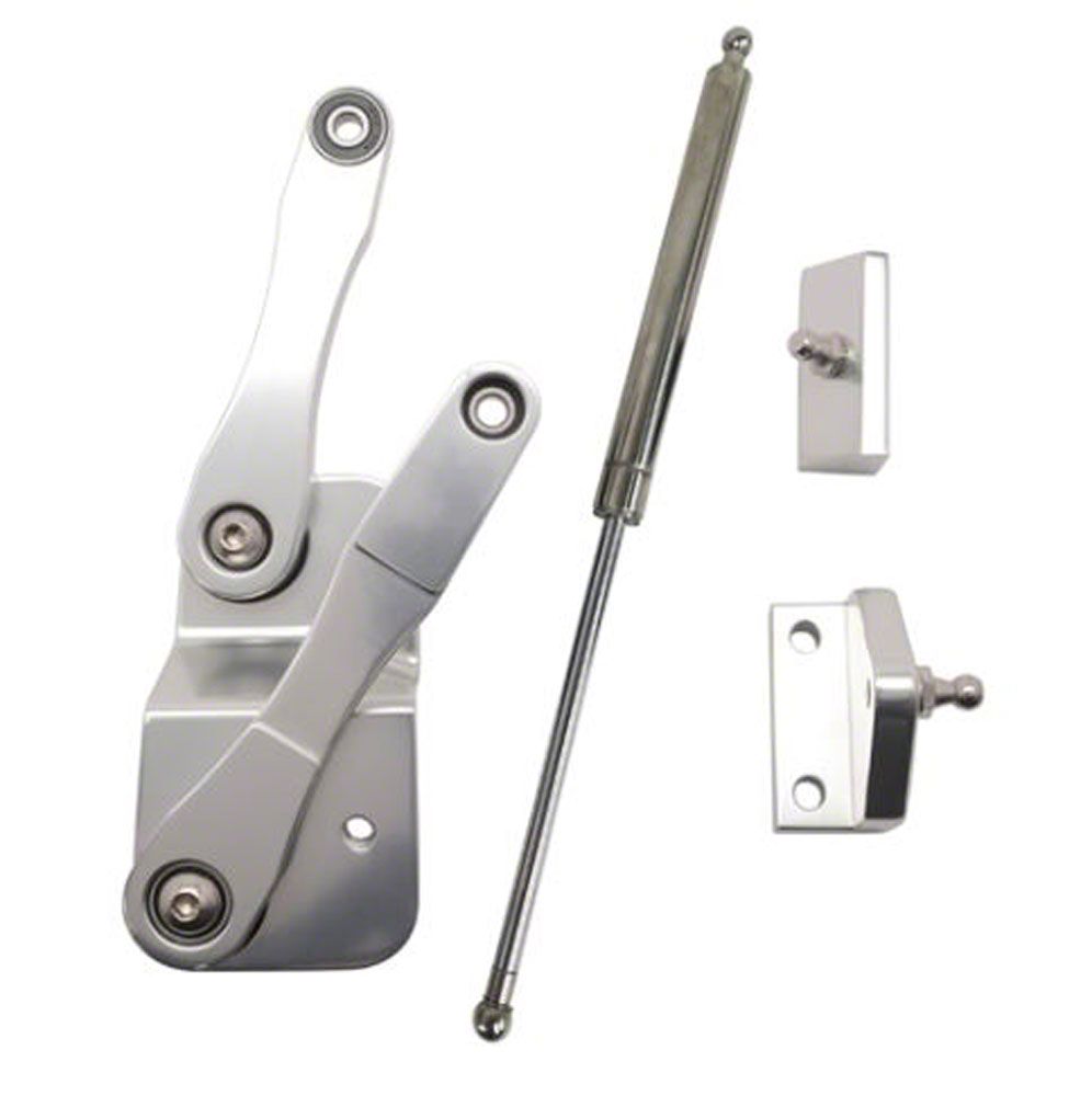 Whether you are looking for the ultimate in under-hood customizing or just want to replace your weak stamped-steel stock hood hinges, Eddie Motorsports hinges from Eckler’s are the answer. The hinges are CNC machined from solid chunks of 6061-T6 billet aluminum in the USA. Stainless steel nitrogen struts are utilized instead of springs and sealed ball bearings are utilized at all pivot points for smooth operation. for reliable operation. Designed as direct fit, “bolt on” units, the hinges utilize the stock mounting holes with elongated slots for ease of gap adjustment.