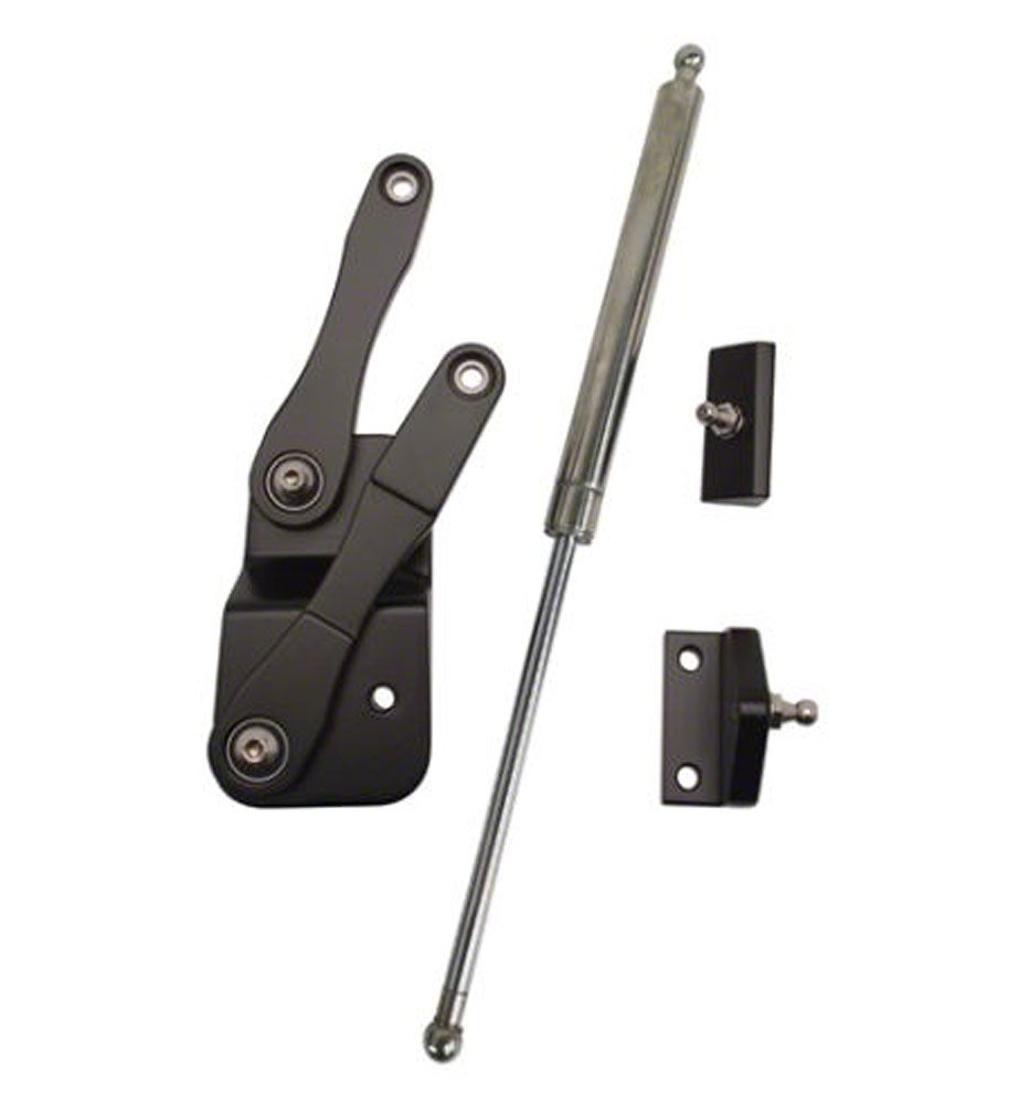 Whether you are looking for the ultimate in under-hood customizing or just want to replace your weak stamped-steel stock hood hinges, Eddie Motorsports hinges from Eckler’s are the answer. The hinges are CNC machined from solid chunks of 6061-T6 billet aluminum in the USA. Stainless steel nitrogen struts are utilized instead of springs and sealed ball bearings are utilized at all pivot points for smooth operation. for reliable operation. Designed as direct fit, “bolt on” units, the hinges utilize the stock mounting holes with elongated slots for ease of gap adjustment.