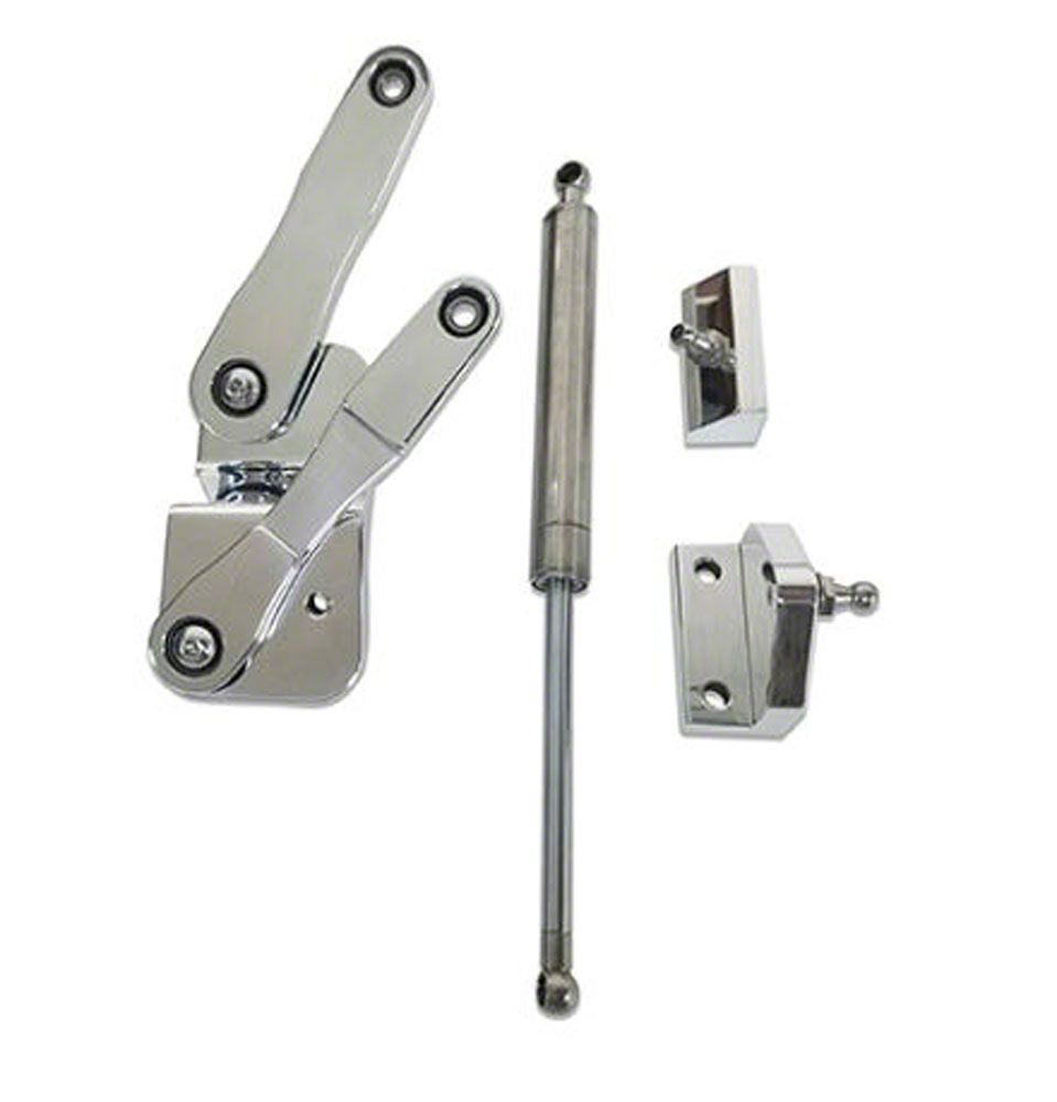 Whether you are looking for the ultimate in under-hood customizing or just want to replace your weak stamped-steel stock hood hinges, Eddie Motorsports hinges from Eckler’s are the answer. The hinges are CNC machined from solid chunks of 6061-T6 billet aluminum in the USA. Stainless steel nitrogen struts are utilized instead of springs and sealed ball bearings are utilized at all pivot points for smooth operation. for reliable operation. Designed as direct fit, “bolt on” units, the hinges utilize the stock mounting holes with elongated slots for ease of gap adjustment.