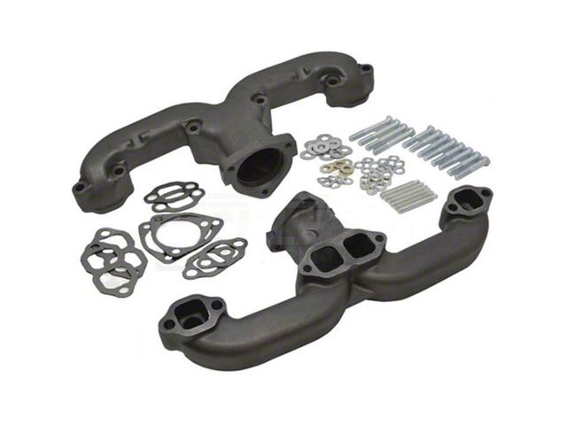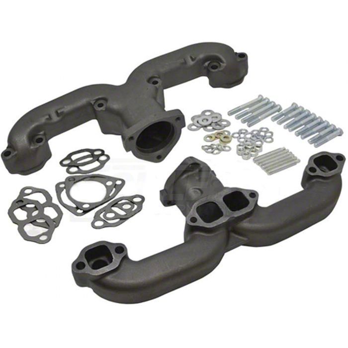 Exhaust manifolds can crack from fatigue over time and you will need to replace them on your Chevy or GMC Truck, Blazer, Jimmy or Suburban. Why not replace them with a set of Chevy rams horn manifolds to give your Chevrolet that vintage performance look? Each pair comes with all the gaskets, bolts, studs and washers to make installation a breeze. No looking around for parts here! These rams horn manifolds give maximum clearance for angle plug heads and are available in ceramic coated black, ceramic silver, Retro Chrome and bare cast. Trust Eckler's Classic Chevy and GMC Truck for all your GMC or Chevy truck parts needs always at the best possible price. Fits: Most Small Blocks 1947, 1948, 1949, 1950m 1951, 1952, 1953, 1954, 1955, 1956, 1957, 1958, 1959, 1960, 1961, 196