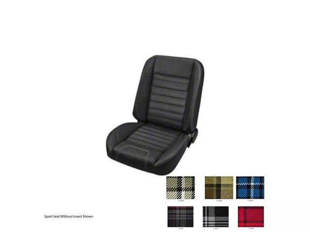 TMI Pro-Series Sport Bucket Seats give your truck a cutting edge look. The upgraded vinyl seat features your choice of stitch color and vintage plaid insert. These assembled seats come complete with molded seat foam and tubular steel frames with slider mechanisms. Mounting brackets available separately. Handcrafted in the USA.