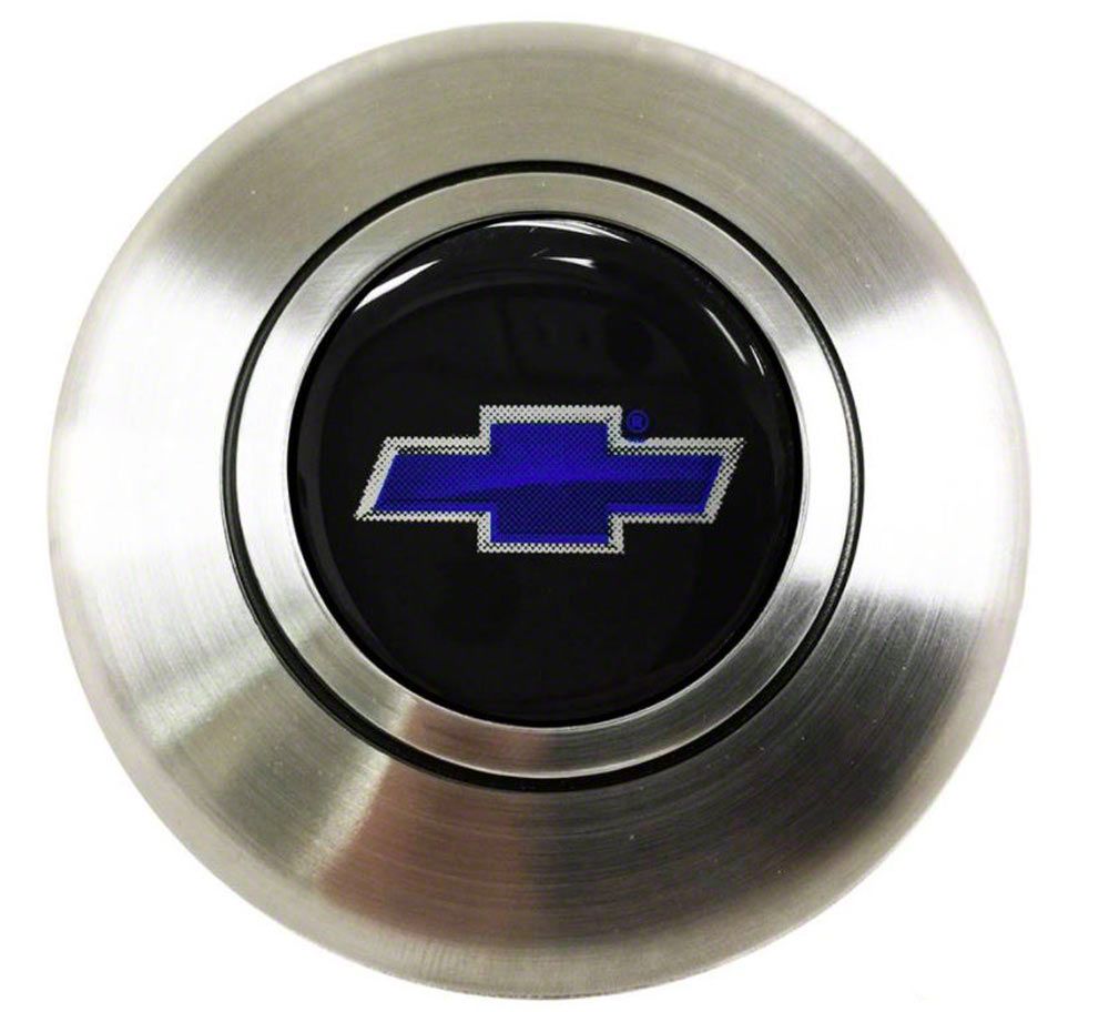 Steering Wheel Center Horn Cap SIlver Satin/Blue Bowtie