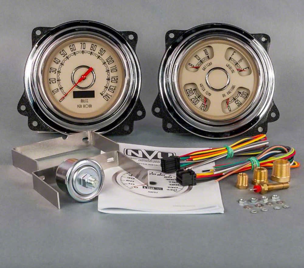 NVU packages from Eckler's Trucksfor 47-53 Chevy truck offer everything you are looking for in a direct-fit package. Each kit includes 2 4-3/8" gauges installed in an exclusive laser-cut mounting bracket with reproduction OE trim bezels for a perfect fit. Original inspired style has the feel of an original dash with subtle differences, or you can go in a completely different direction to fit the theme of your ride. Fits: 1947, 1948, 1949, 1950, 1951, 1952, 1953 Chevy and GMC Truck