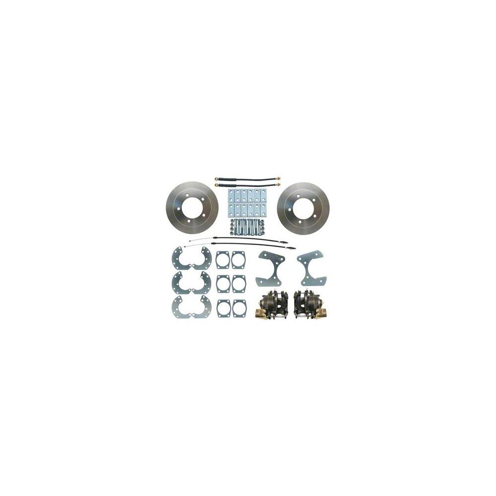 This kit provides an easy to install, bolt on solution for upgrading your Pre-1987 Ford 9 inch rear-end light truck to disc brake performance. Many consumers may be unsure of which size 9” rear-end their vehicle has. This kit is unique in that it provides all the brackets and flanges that fit the three most popular sizes of the 9” rear end (3-3/8” x 2”, 3-1/2”x 2-3/8”, 3-9/16” x 2”). Top that off with 5 on 5 1/2 bolt pattern rotors and you eliminate much of the customer guess-work when purchasing and installing the kit. It comes in both standard and high performance models. The high performance LX kits upgrade to cross-drilled and slotted rotors and stai