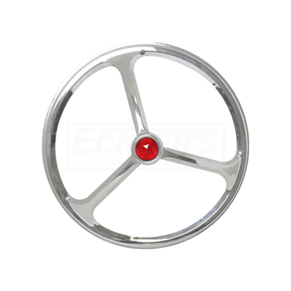 Headlight covers are really cool and look great on 1949, 1950, 1951, 1952, 1953 or 1954 Chevrolets. Eckler's Early Chevy has this popular accessory in the 50's and 60's in bright chrome to set your Bel Air, 150, 210, Fleetline, Styleline or wagon apart from all the rest. The Lucas style tri bar cover is cast with a gleaming chrome finish and features a red glass dot center. It's easy to give your classic 1949, 1950, 1951, 1952, 1953 or 1954 Chevrolet a wicked new look with tri bar headlight covers from Eckler's Early Chevy.