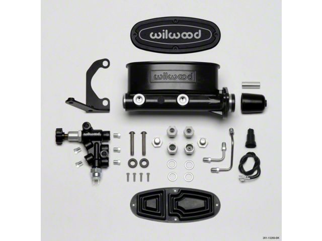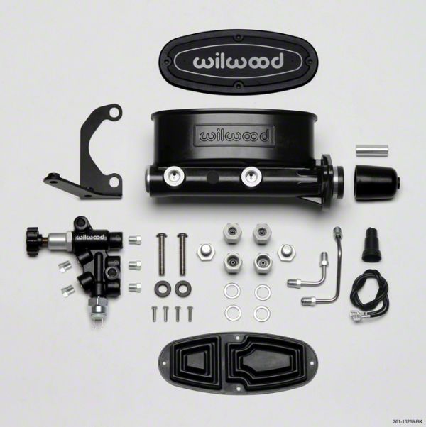 Wilwood Master Cylinder Kit, Tandem, Black Electrocoated Aluminum, with Bracket & Valve, 1.00 Bore (1949-1952 Fleetline; 1949-1952 Styleline Deluxe; 1949-1952 Styleline Special)