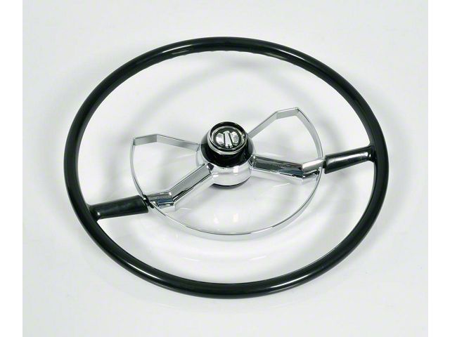 Replacing your cracked original steering wheel gives your 1950, 1951 or 1952 Chevrolet a showroom new look. Eckler's Early Chevy offers a great reproduction butterfly steering wheel kit for your classic. The black wheel kit comes complete with horn ring and center cap. The 17 1/2" diameter mimics the original and will give your interior a fresh new look. Trust Eckler's Early Chevy for all your 1950, 1951 or 1952 Chevrolet restoration parts needs.