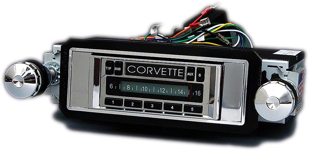 Classic Stereo Upgrade. The Custom Autosound USA-230 AM/FM Stereo Concours Series is the perfect audio upgrade for your vintage 1953-1957 Chevrolet Corvette C1 Convertible. Combining modern functionality with a retro design, this stereo maintains the classic look of your dashboard while offering compatibility with a wide range of modern devices.