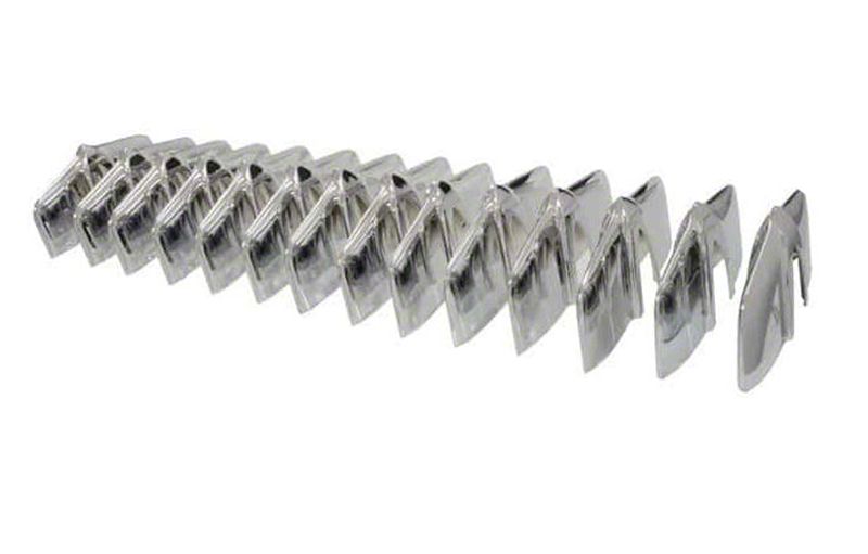 Construction and Appearance. Each grille tooth is manufactured from premium-grade materials, ensuring strength and longevity. The polished chrome finish adds a sleek, eye-catching appeal while resisting rust and corrosion.