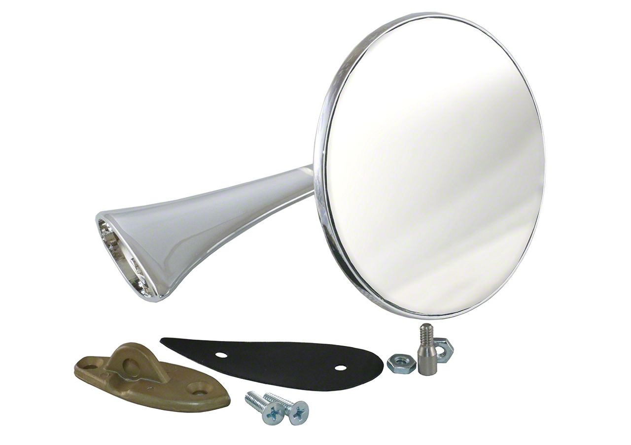 Classic Style Enhancement. The Chrome Door Mirror Guide Y-50 is an authentic reproduction designed to restore and enhance the classic styling of your vintage Corvette. This mirror offers an adjustable design, providing both functionality and elegance to complement the timeless appeal of your vehicle.