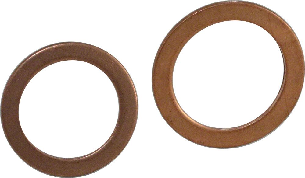 Construction and Appearance. Constructed from durable, high-quality copper, these washers are engineered with modern manufacturing techniques to ensure a reliable fit and long-lasting performance. The package includes both a small and a large washer, crafted to meet or exceed OEM specifications, perfectly suited for your classic restoration.