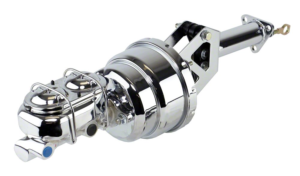 Construction and Appearance. Featuring a chrome 7-inch dual diaphragm booster, the kit ensures increased pedal response and reliability. The 1 1/8-inch bore master cylinder provides optimal brake fluid flow, improving overall braking efficiency. This conversion kit is designed to work with your existing pedal and linkage, offering a seamless integration into your vehicle.