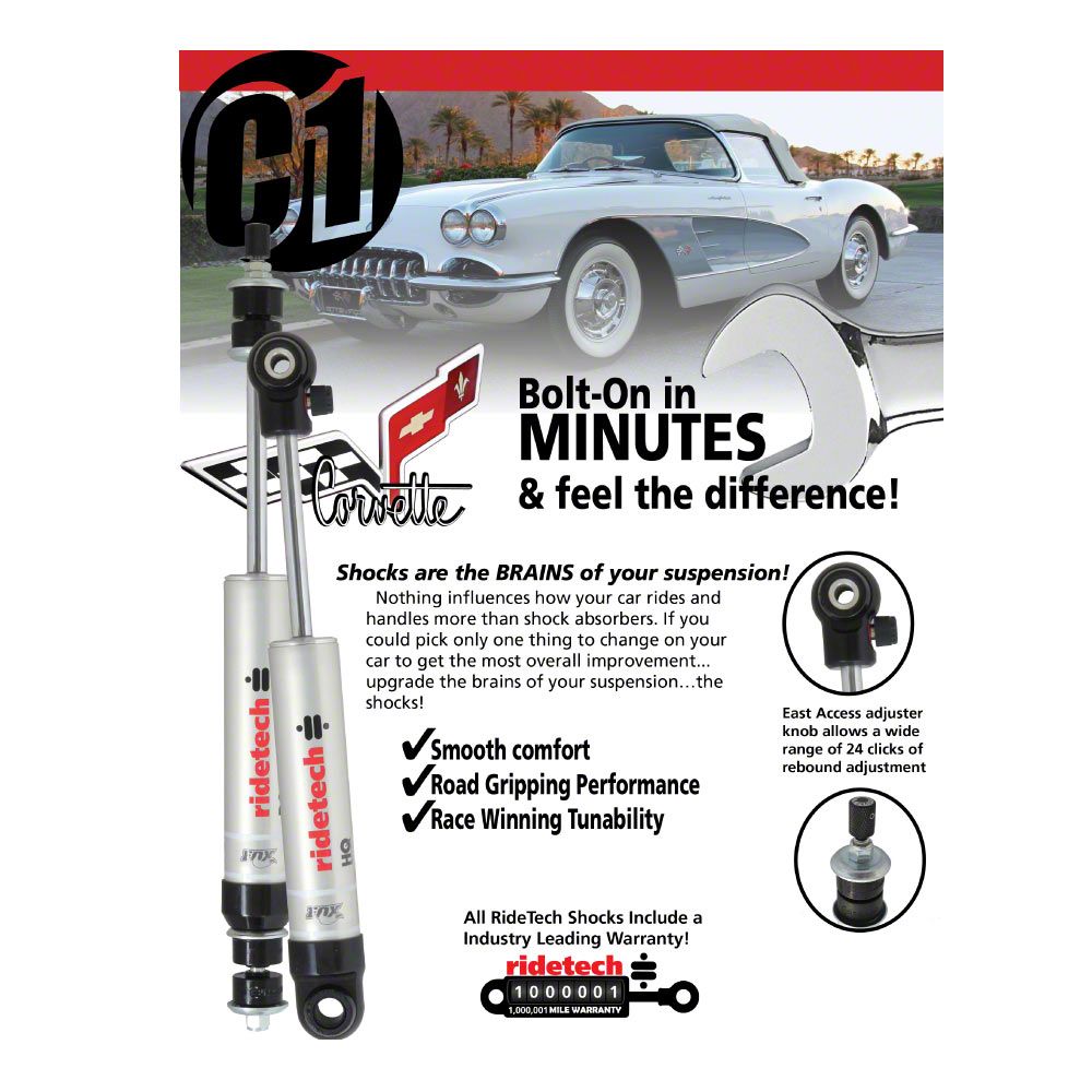 Application. The Ridetech Level 1 Shock System fits 1953-1962 Corvette models.