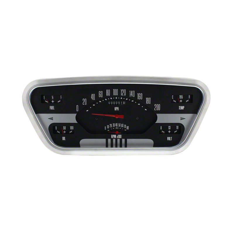 Keep your dash's classic look and bring your gauges into the 21st century with a new 6-in-1 gauge package from Mac's. Gauge cluster features 0-200 KPH speedometer, 8k tach, fuel, oil, and volt gauges.