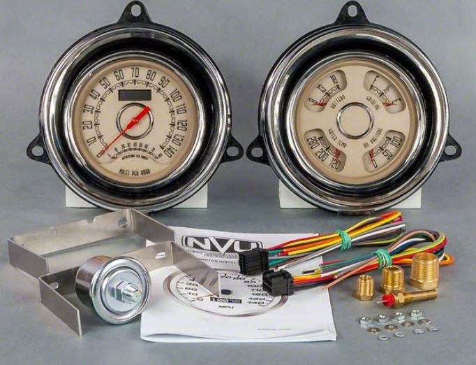 1954 Chevrolet Truck New Vintage USA Woodward Series 2 Gauge Kit - Dual Gauge with Programmable 140 MPH Speedometer and Tachometer - Quad Gauge with Battery, Fuel, Water Temp. and Oil Pressure - Beige