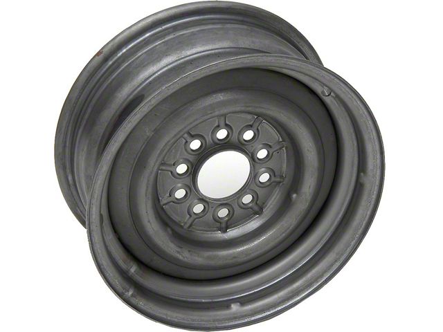 Tri-Fives look really cool with a full wheel cover on them. Good for looks, not so good for braking. Original wheels will not clear aftermarket factory style disc brake conversions. 14" early Camaro wheels will. But, there is no provision to attach the full size hub cap. Eckler's Classic Chevy brings you this replacement wheel that will actually go over the 11" rotor and caliper with a little room to spare. Trust Ecklers Classic Chevy for all your 1955, 1956, 1957 Chevrolet Bel Air, 150, 210, Nomad or wagon restoration parts always at the best possible price.