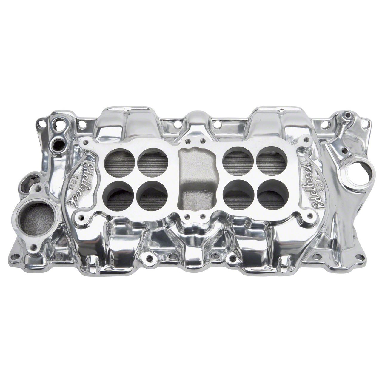 C-26 DUAL-QUAD (1500-5500 RPM) For 1955-86 262-400 c.i.d. S/B Chevys, this dual-quad has a low profile for hood clearance on most vehicles. Air-conditioning bosses and front oil filler tube boss included. Stock alternator brackets do not fit. C-26 Dual- Quad intake manifold #5426 is designed for Chevy V8's with 1996 and later Vortec (L31) cast iron or Edelbrock E-Tec aluminum heads. An external water bypass boss is machined into the front of the water crossover for use on 1996 and later Vortec production engines. Carb center to carb center: 6-7/16". Accepts oil fill tube and breather #4803. Use with Performer-Plus cam #2103 for low-end torque or Torker-Plus cam/kit #5002 for top-end power. Available with satin, polished or EnduraShine finish. Carburetor Recommendations: Edelbrock Thunder S