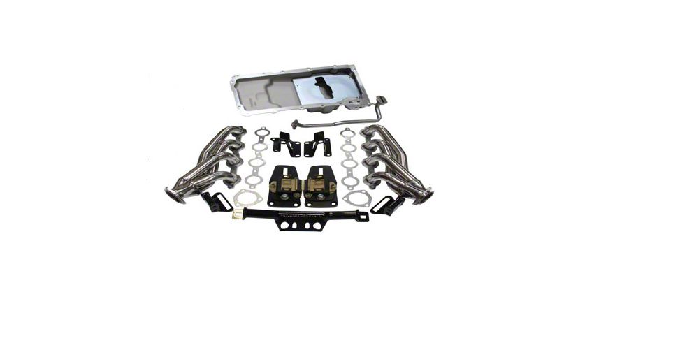 Easily install a modern, dependable, light weight, low maintenance, high powered V8 with CPP’s new LS conversion install kit. Install kit works with all Vortec and most LS engines. Kits include ceramic coated headers, CPP’s FitRite adjustable transmission crossmember with polyplus pads, engine side mounts and CPP’s FitRite adjustable engine side plates with polyplus pads. Car applications will also include an oil pan, windage tray and oil pick up tube. Note: May not work with LSX heads and dry sump oil systems. Not for LS7 applications