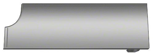 The fender bottom rear patch panel, repairs the area from the outer rocker panel 28 inches forward, and is 10-1/4 inches high. On 1956-1957 models it fits just below the vent door. This panel is flanged at the door opening and has a mounting plate for the fender bracket.