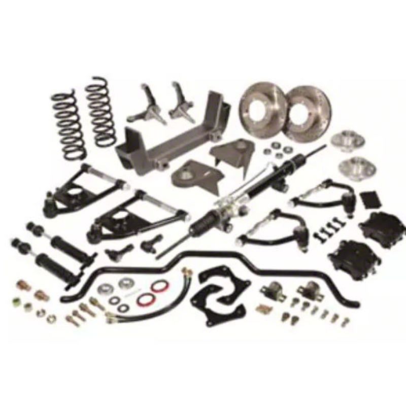 Over time your front suspension can wear down and rust leading to serious ride performance issues. Eckler's Trucks offers the full independent front suspension kit to make sure your 1955-1959 Chevy Truck has the best performance possible. This comprehensive kit includes a weld-in crossmember, tubular upper & lower control arms, screw-in ball joints, 11" 5-lug GM rotors & GM calipers, 2" drop or stock height spindles, coil springs & shocks. This kit also features rack & pinion, tie rod ends & all mounting hardware. All parts in the kit are made with the highest quality materials and will fit perfectly in your 1955 1956 1957 1958 1959 Chevy Truck! Always trust Eckler's Trucks for all your restoration needs!