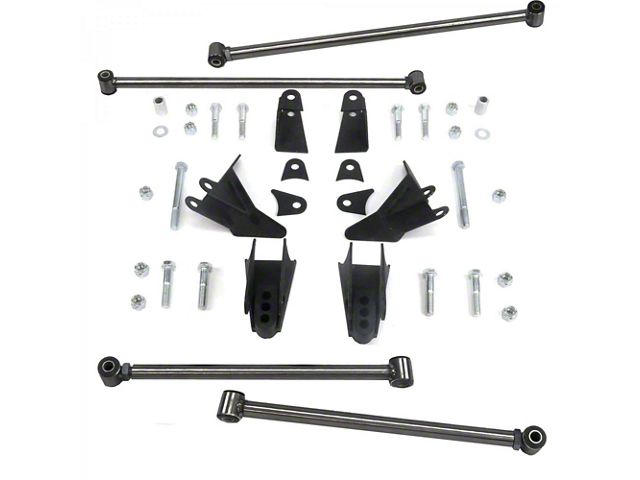Helix's Heavy Duty Universal Triangulated 4-Link Kit is strong enough to handle your horsepower and torque. With the same .156 wall tubing that is the standard in drag racing applications, Helix's 4-link kit will remain straight and perfectly aligned under even the most demanding applications. The adjustable rear 4-link features extra-long 28 inch main bars and 18 inch secondary bars to provide you with the maximum in suspension travel and adjustability. Brass sleeved bushings guarantee a lifetime of squeak-free operation. Completely MIG welded for maximum strength. All mounts are cut from 3/16” plate. Special infinitely adjustable CNC machined threaded rod ends are thicker than usual and thread over 2.5 inches into the 4-link tubes for both strength and adjustability. Fully plate