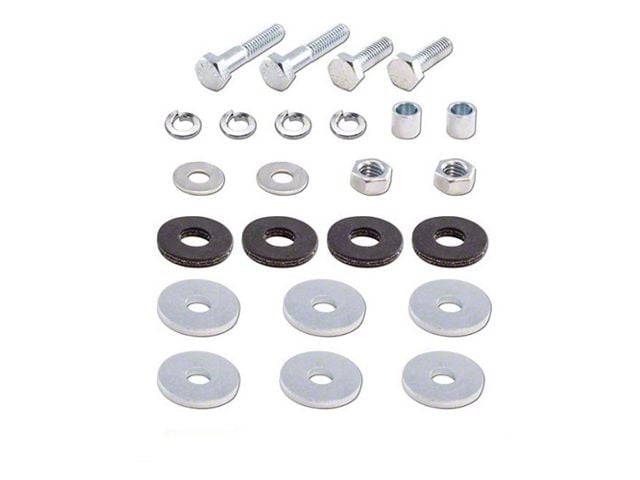 Nice reproduction of often missing steering column clamp hardware. Twenty four piece set contains thick washers, spacers and metal sleeves.