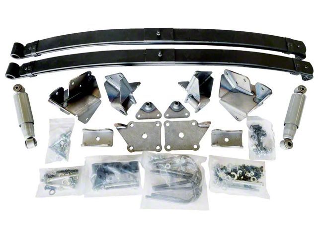 TCI's American made Parabolic leaf springs are a modern implementation of traditional parabolic leaf springs. This design is characterized by fewer leafs whose thickness varies from center to ends following a parabolic curve. In this design, inter-leaf friction is unwanted, and therefore there is only contact between the springs at the ends and at the center where the axle is connected. The primary benefit of parabolic springs is better ride quality and not being as stiff as conventional multi-leaf springs. As an added bonus there are less springs which offers 28% weight savings over the 5 leaf kit previously offered.This kit includes everything you???ll need to install a brand new suspension into the rear of your vehicle. Everything that attaches to the chassis bolts into place. There