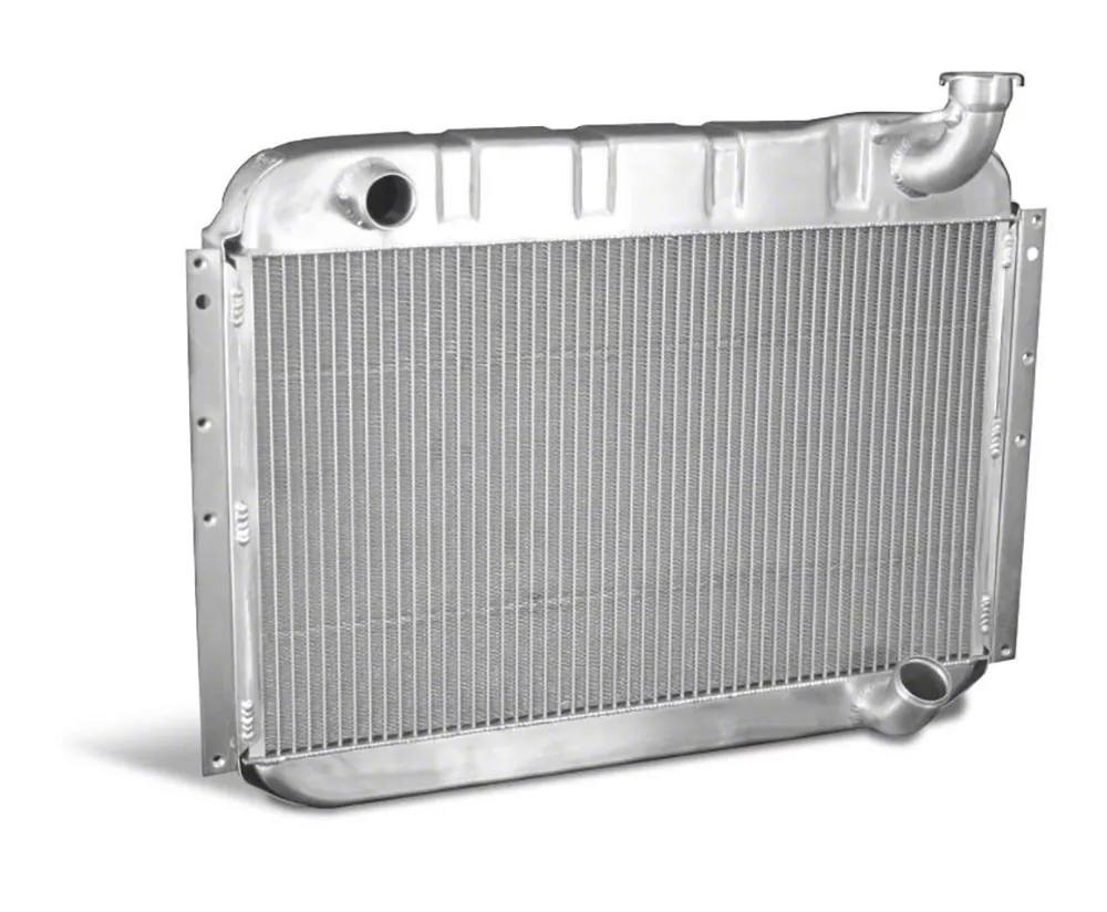 This direct replacement radiator features correct "pressed formed" aluminum tanks & factory side brackets and doubles the cooling surface. The core of this aluminum replacement is furnace brazed which provides a leak-free core without the use of epoxy.