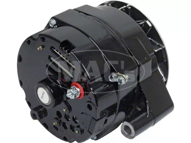 Ford small case alternator, 100 amp, smooth back, 1-wire, powder coated black finish, V groove pulley, low idle internal regulator, spike resistant diodes, Tuff-Tested to exceed industry standards.