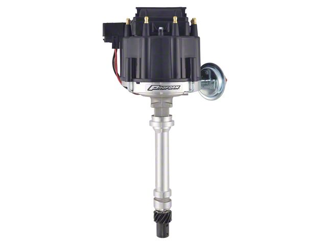 Designed to meet the high performance demands of racing competition, this unit will fit small and big block Chevy engines. This high-performance distributor produces a 50,000 volt spark through 7,500 RPM with true spark alignment for instantaneous response, a high-performance curve, a premium cap with brass terminals, and a low-saturation ignition module.