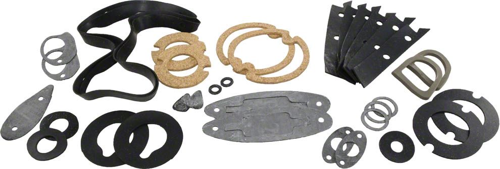 This kit includes all the common body-mounted component seals that you'll need to replace after repainting your car. Precisely die-cut from the correct materials, these seals will fit perfectly just like the originals. Replacing the body seals is an essential, yet very affordable step in every restoration project.
