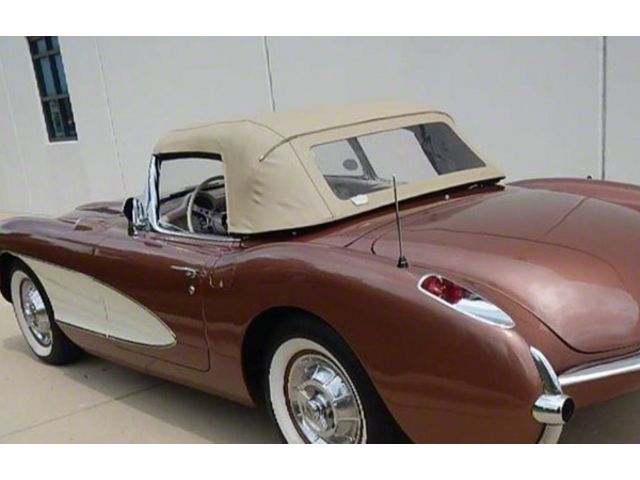 1956-57 tops are made of heavyweight 36-38 oz. vinyl with black mildew-resistant backing and the rear window is sewn, just like the orginal. All seams are sewn or die-electric sealed as original by year. Tops are supplied with pad kits, washing instruction tag, stainless steel tips, hydem strip and pull straps. For date coded top, see alternate items.