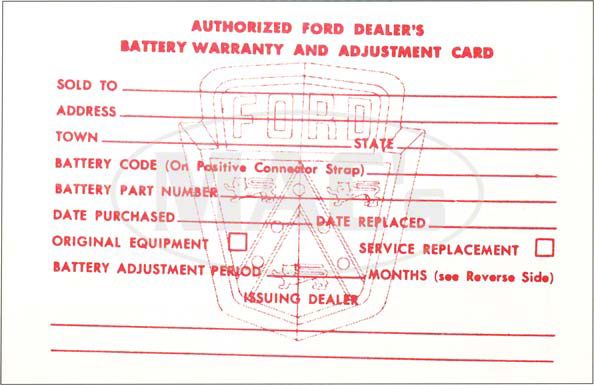 1956-1957 Ford Thunderbird Battery Warranty Card