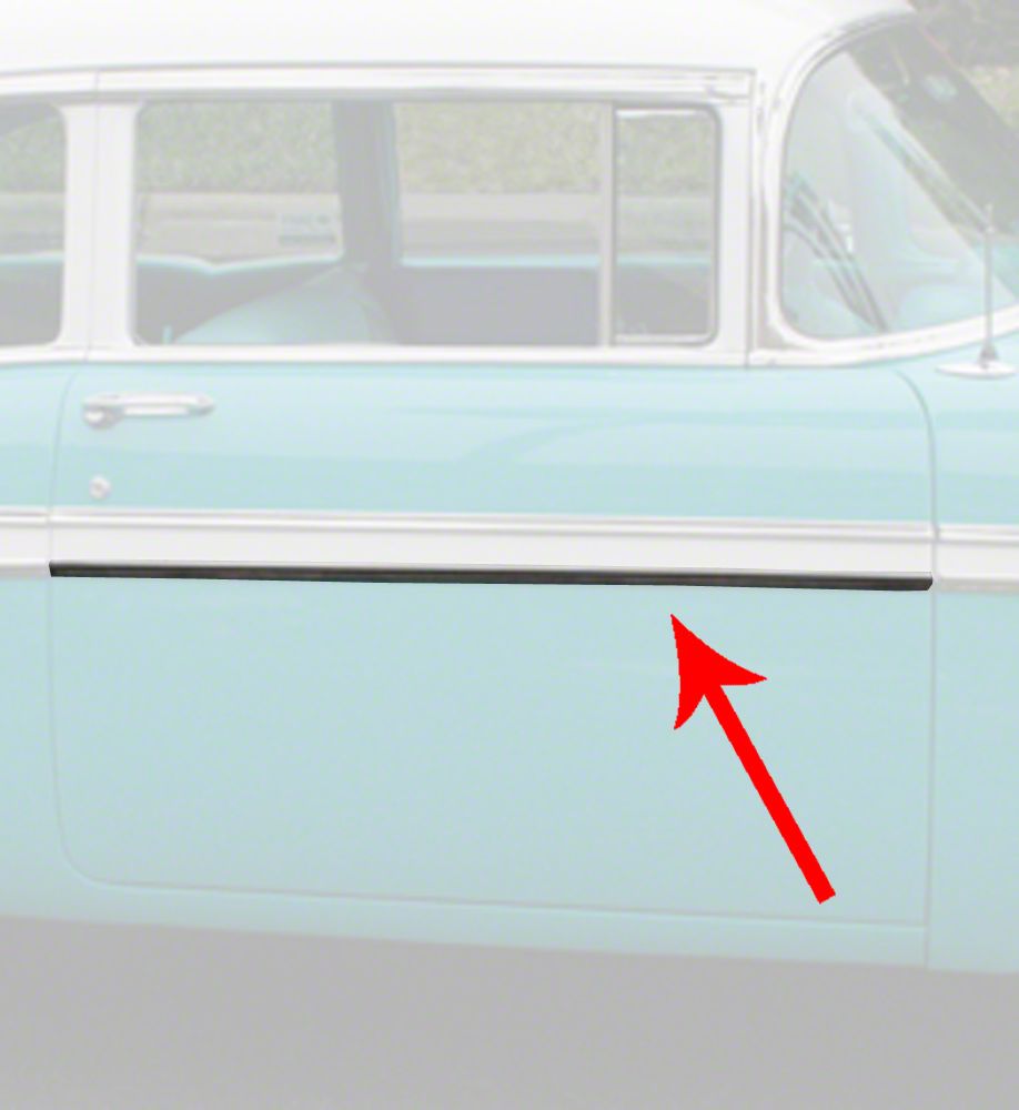 The door molding strips on your 1956 Bel Air Chevy can take a lot of damage over the years. Acting as an aesthetic lining along the fenders of your Chevy, they can get scuffed or scratched from outside elements, leaving your exterior looking less than professional. Eckler's Classic Chevy is happy to offer this new stainless steel door molding strip for your Chevrolet Bel Air. Bring that shine back to your Chevy's exterior to really make your ride pop. From racers, show cars, hot rods, and daily drivers, you can trust Eckler's Classic Chevy for all of your restoration and replacement needs for your 1956 Chevrolet Bel Air!