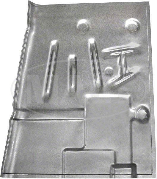 This front floor pan is precision die stamped to exacting standards. This panel repairs the front floor area from the bottom of the toe board, rear ward to to just behind the front seat. Extends from the driveshaft tunnel to the rocker panel. Die stamped from 18 guage steel and features all of the original shapes and detail features. Proudly made in the USA and fits all body styles. Measures 26 x 32. For all of your classic Ford restoration needs, count on MAC's.