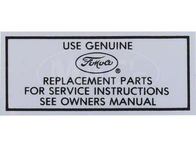 Air Cleaner Service Instruction Decal (57-59 Ranchero)Find parts that fit my vehicle