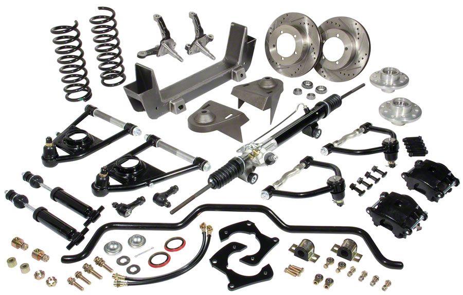 Enjoy the comfort and benefits of having an independent suspension system in your early Ford truck or car without paying the big prices of other kits. These kits come with crossmember, coil springs, spindles, brakes, shocks, upper and lower control arms, rack & pinion, plus mounting hardware. Specify manual or power steering and stock or dropped spindles.