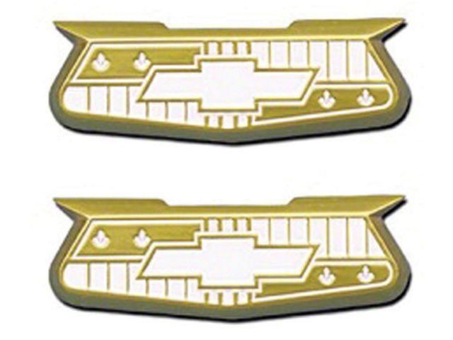 If you are looking for the best, show quality 1957 Chevrolet gold quarter panel "Bel Air" crest emblems for your Bel Air, Nomad or wagon, stop right here because Eckler's Classic Chevy has the best quality you can buy! These superior quality emblems fasten to the quarter inserts on the 1957 Chevy and are forged aluminum just like the originals were. These quarter panel crests are exact duplicates of the original right down to the original gold anodizing that has a slight bronze tint to it. Trust Ecklers Classic Chevy for all your Tri-Five parts needs always at the best possible price.