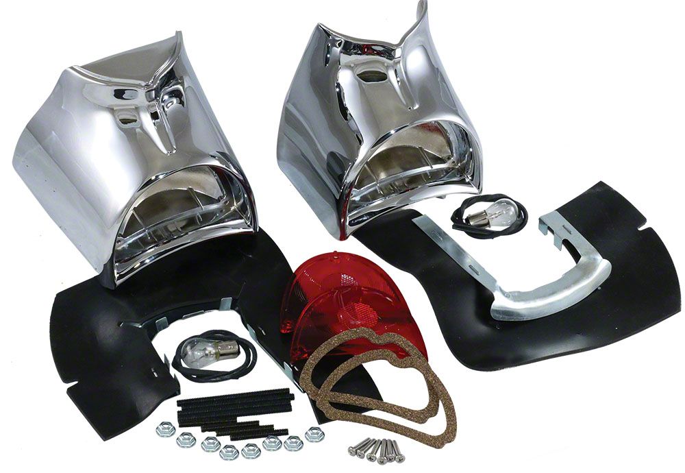 These Chevy reproduction taillight housing assemblies for your 1957 Chevrolet Bel Air, 150, 210, Nomad, Sedan Delivery or wagon are considered the "Best In America". The Experts here at Eckler's Classic Chevy start with a superior chrome housing and hand-pick the best quality lenses from Trim Parts?? to go along with our best quality hardware, gaskets an seals to offer you only the best 1957 Chevy tail lamp assemblies you can buy. Trust Ecklers Classic Chevy for all your Chevrolet parts needs always at the best possible price.