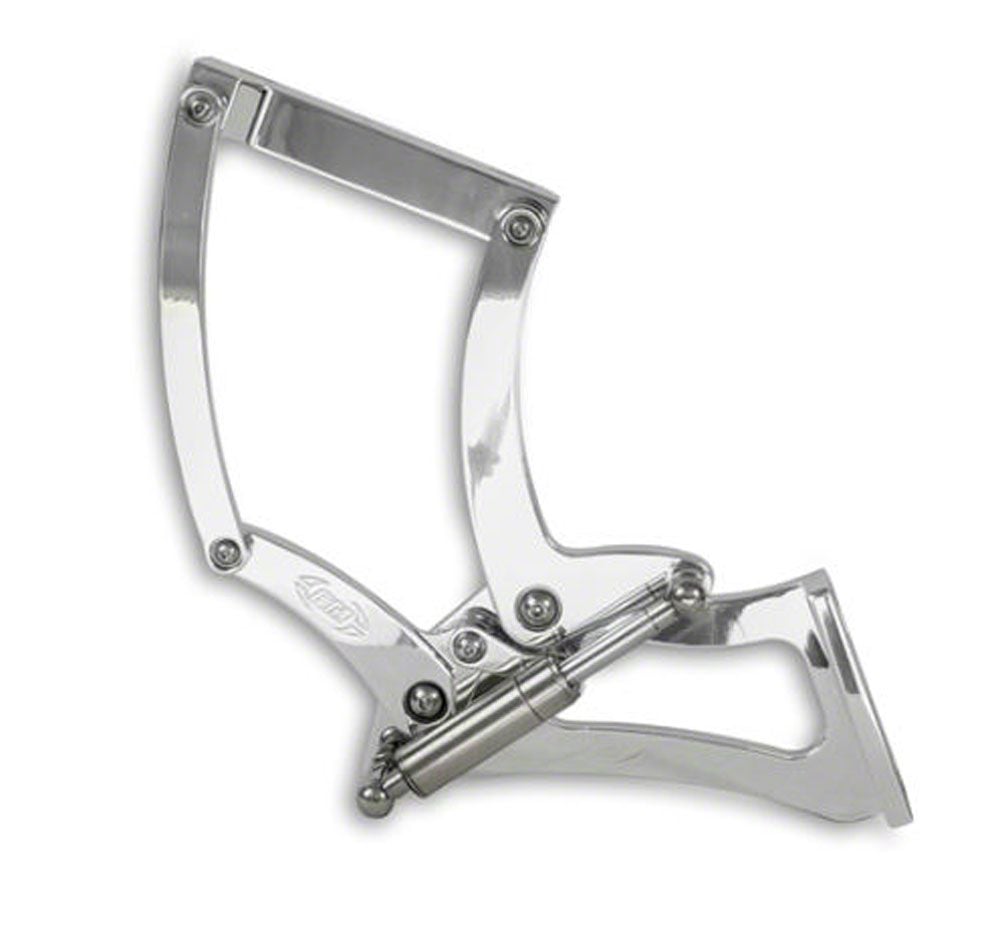 Whether you are looking for the ultimate in under-hood customizing or just want to replace your weak stamped-steel stock hood hinges, Eddie Motorsports hinges from Eckler’s are the answer. The hinges are CNC machined from solid chunks of 6061-T6 billet aluminum in the USA. Stainless steel nitrogen struts are utilized instead of springs and sealed ball bearings are utilized at all pivot points for smooth operation. for reliable operation. Designed as direct fit, “bolt on” units, the hinges utilize the stock mounting holes with elongated slots for ease of gap adjustment.