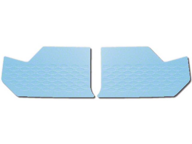 From 1958 thru 1960, all interior kick panels were vinyl covered. The partial oval indentation on the lower part has been accurately reproduced on the 1958 and 1959 panels, as is the four stripe indentation on the 1960 panels.